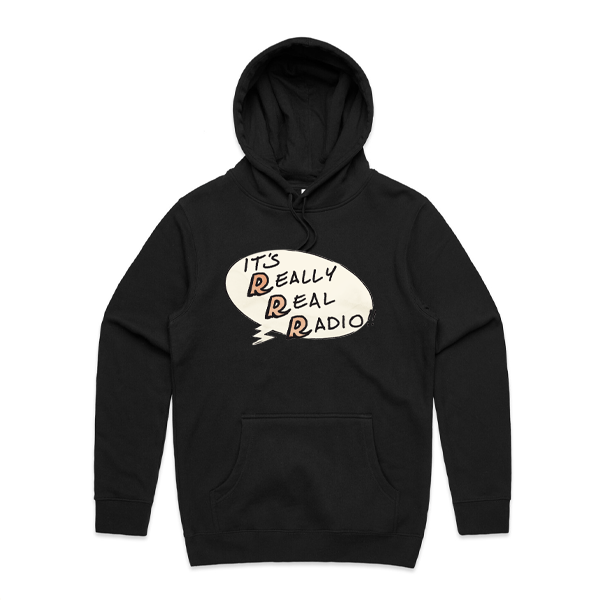 Stay super warm AND cool in your new Really Real Radio Hoodie, featuring artwork created by local illustrator, tattooist and musician Cosmo Feltham.