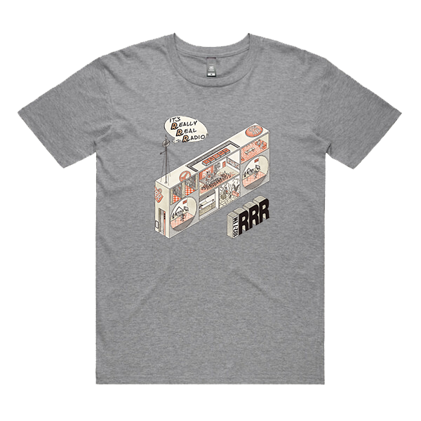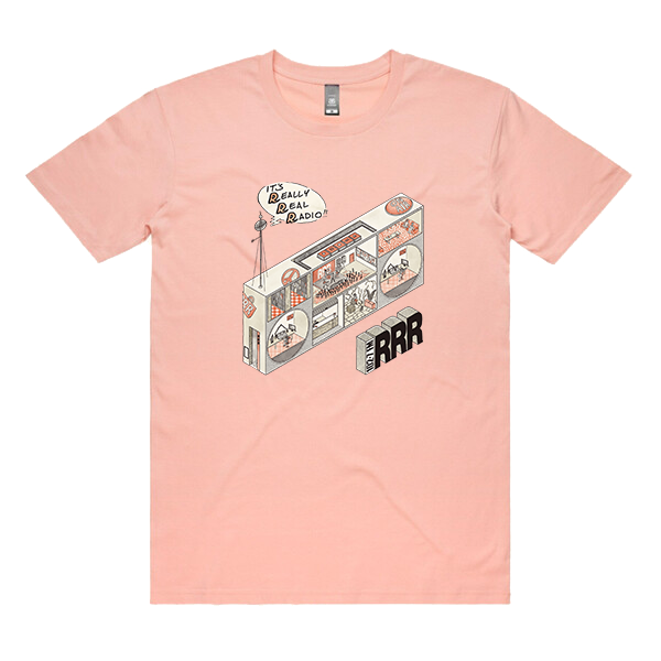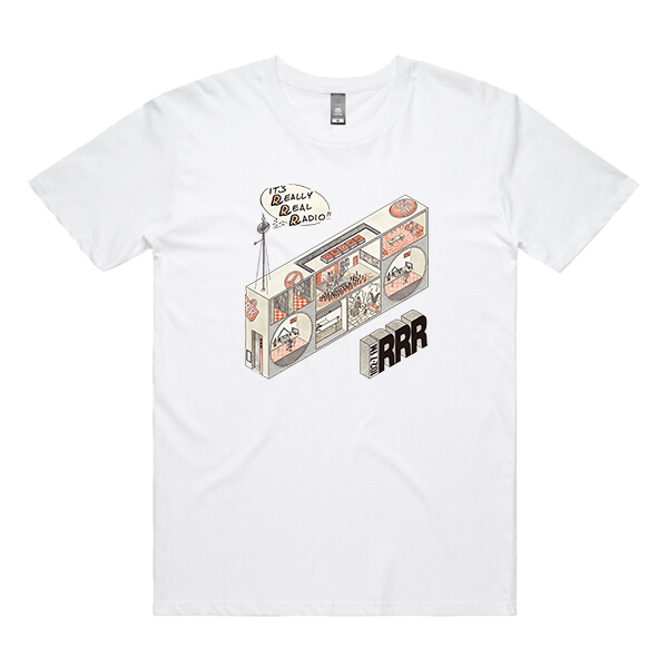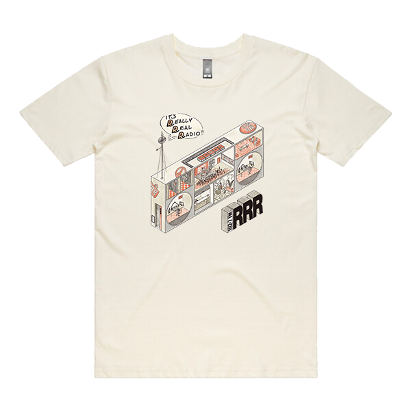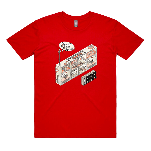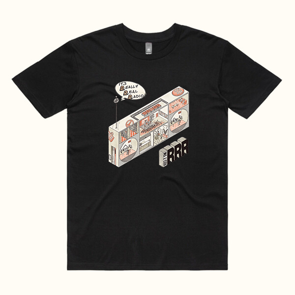 The April Amnesty 2025 Really Real Radio Tee features artwork created by local illustrator, tattooist and musician Cosmo Feltham.