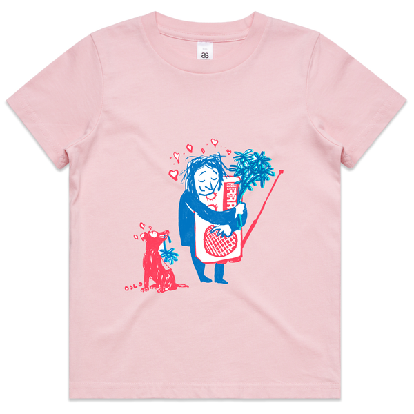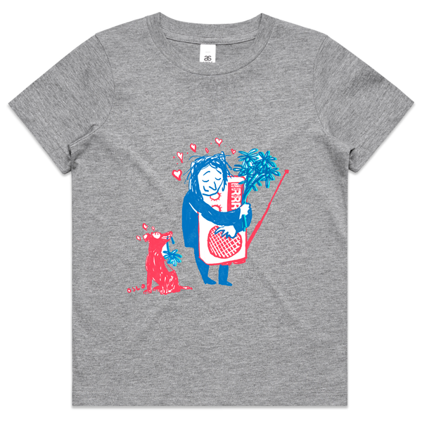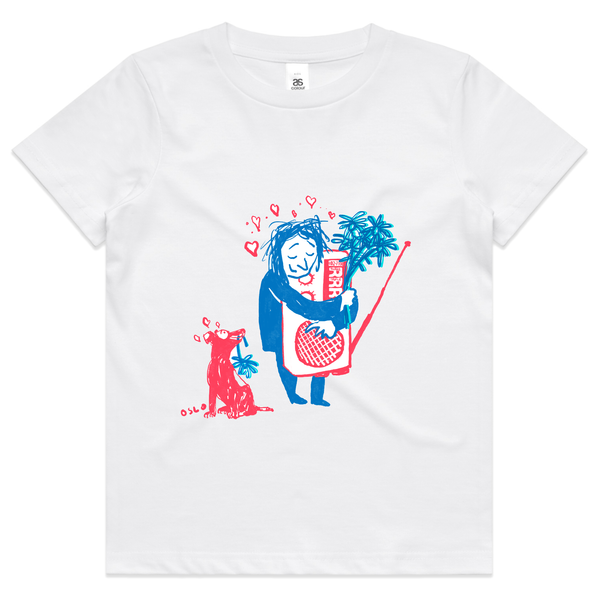 Our Forget Me Not Kids T-Shirt features an illustration by local artist, Triple R Broadcaster, and friend of the station – Oslo Davis!