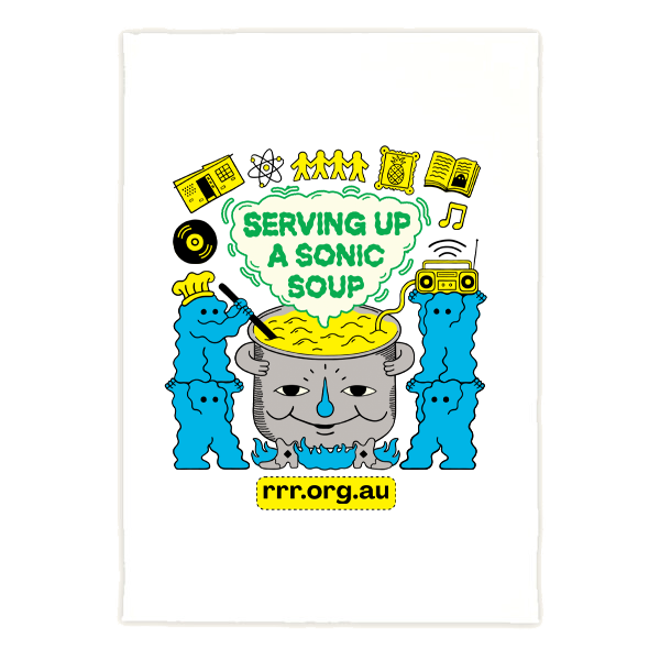 Mop up your mess with this tea towel featuring Radiothon 2024 artwork by local illustrator Siobhan McCarthy.